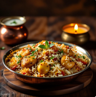 Arroz basmati, cordero marinado, cocción vapor sellada. Perfume rosa. Biryani imperial de Lucknow.